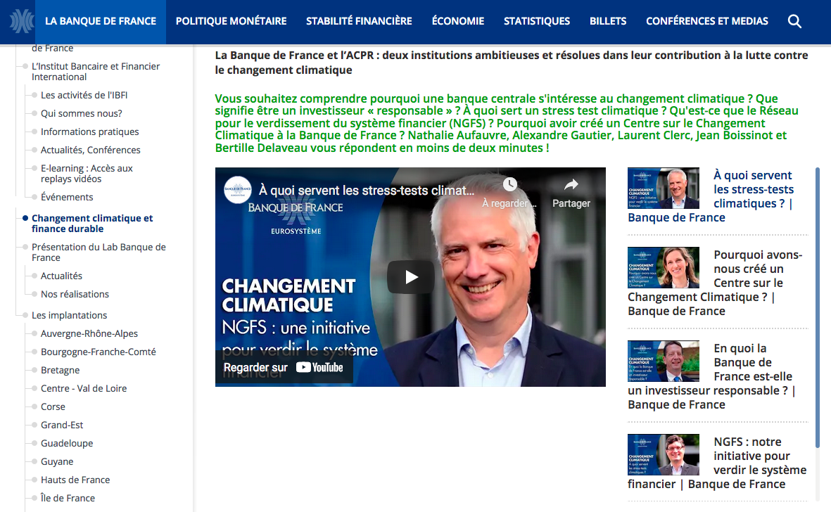 - Supervision des banques et assurances (notamment à travers la réalisation de "stress test" climatiques à l'échelle française en 2020, et reconduits à l'échelle européenne cette année)